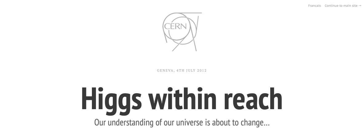 Working on my portfolio I found the final design for the roadblock for the CERN website when the Higgs discovery was announced. Had to sit on that information for two days.