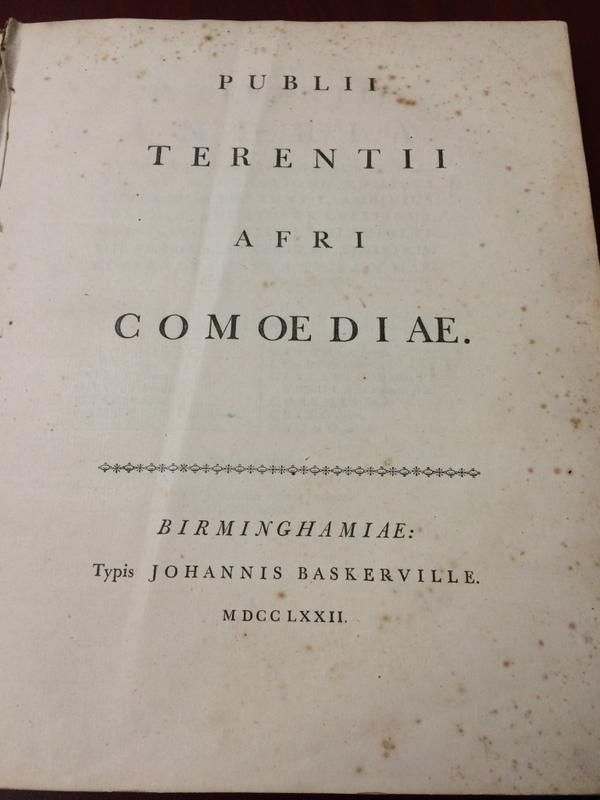 Looking through an original copy of ‘Publii Terentii Afri Comoediae’, printed by John Baskerville in 1772.